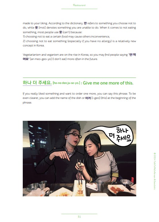 For those who have a curious mind and want to communicate with the locals more actively, the book also provides quick guides to everything you need to know including how to read Hangeul, Korean numbers, how to ask a question, etc..